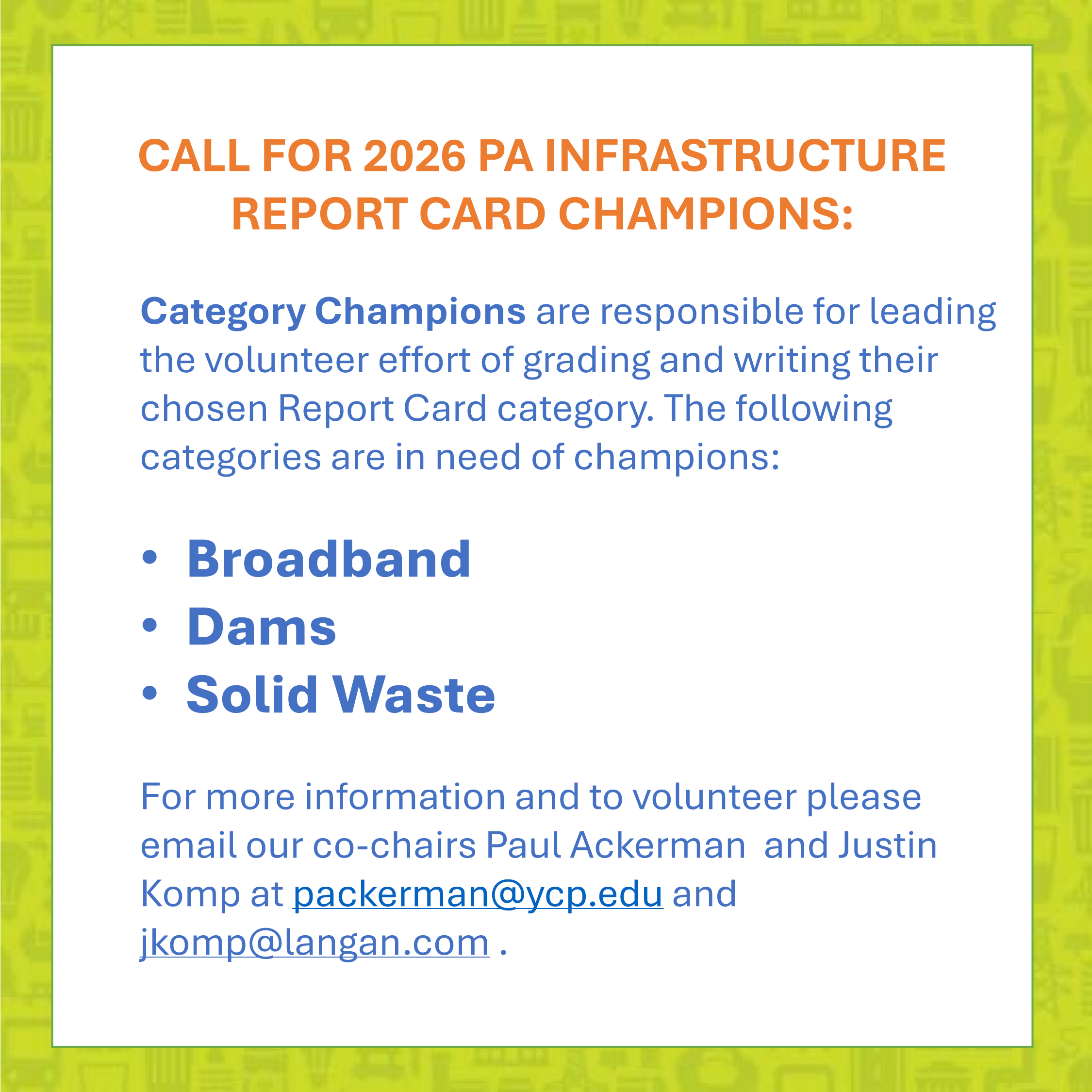 What to receive the ASCE Central PA Section Newsletter, please send an email to Newsletter Chair Loujin Daher to be added to the distribution list.