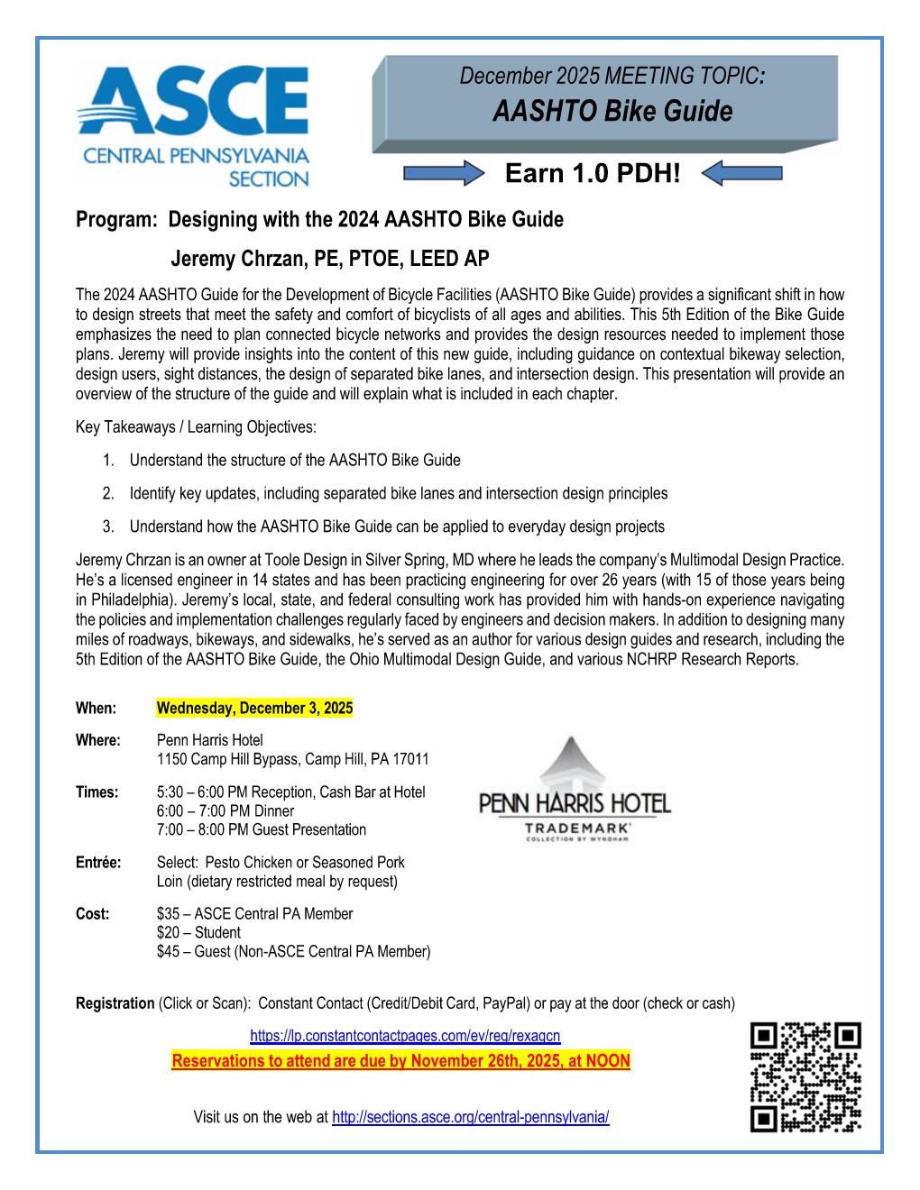 Please use this link to register: ASCE Central PA December Dinner Meeting (12/3/2025)