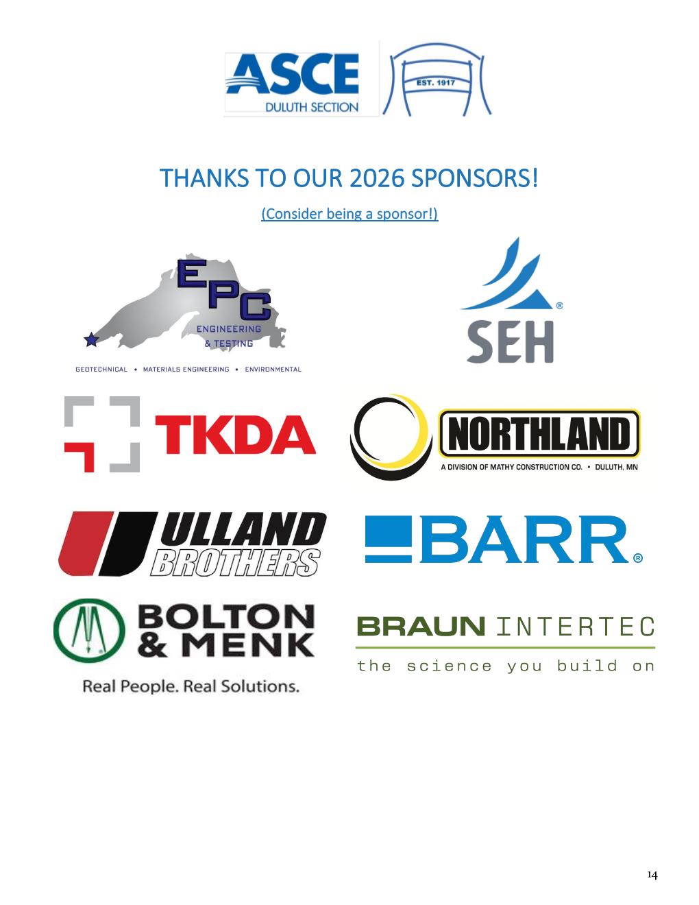 Our next luncheon is on March 17th at noon at BARR Engineering in Duluth. Anthony Peterson from NSBA (National Steel Bridge Alliance), will be presenting on steel and steel bridges. Please use the collaborate link (watch your email) to RSVP so we can plan an accurate lunch head count. If you are unable to use Collaborate, please send me a message. The cost of this event is $25 if you register before 5 pm on March 13th and $30 at the door for professionals.
