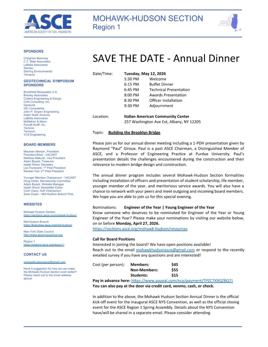 Professor Paul Giroux will be giving a PDH approved presentation on the construction of the Brooklyn Bridge