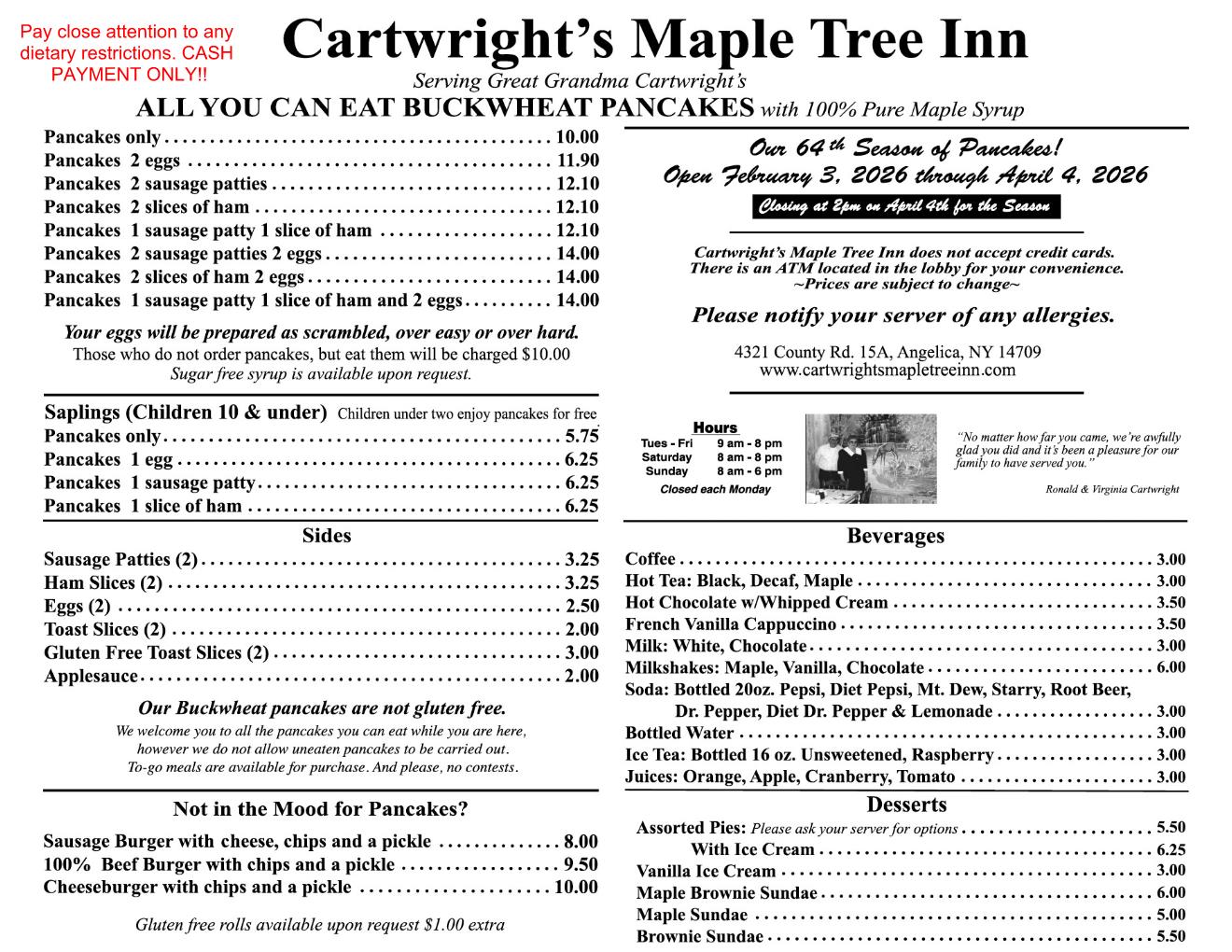 Cost determined by table. Bring cash!