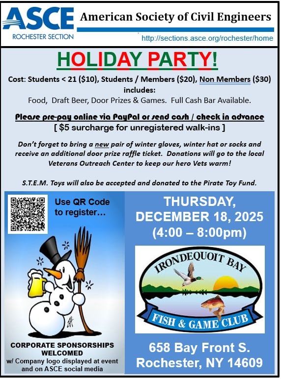 Corporate sponsorships accepted - with company logo displayed at the event and on ASCE social media.