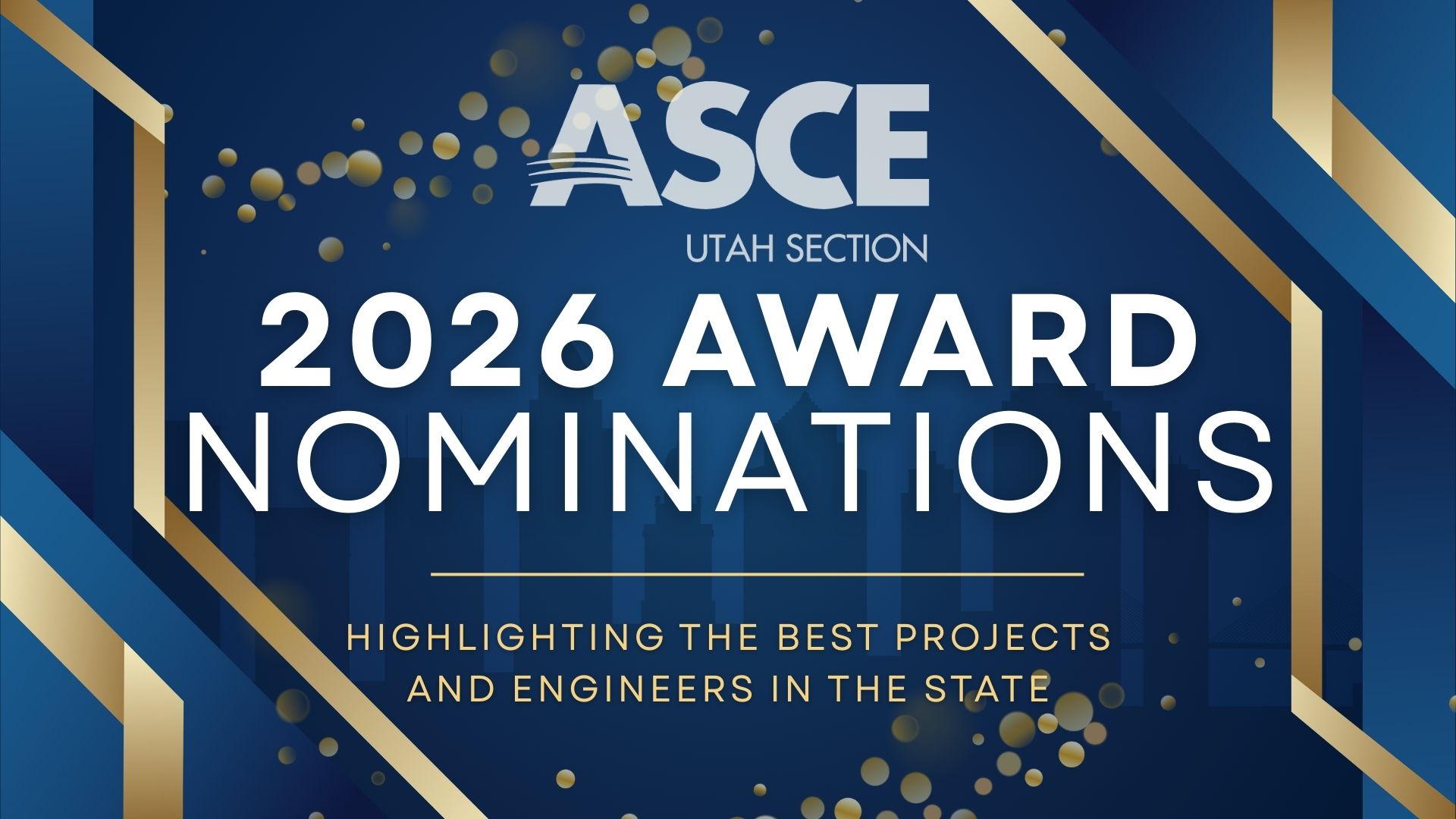 Nominations are now OPEN for 2026 ASCE Utah Awards! Each year, ASCE Utah searches for the best and brightest engineers and innovate projects within the state. If you believe you, your colleagues, or your firm's projects deserve recognition, we want to hear from YOU!
