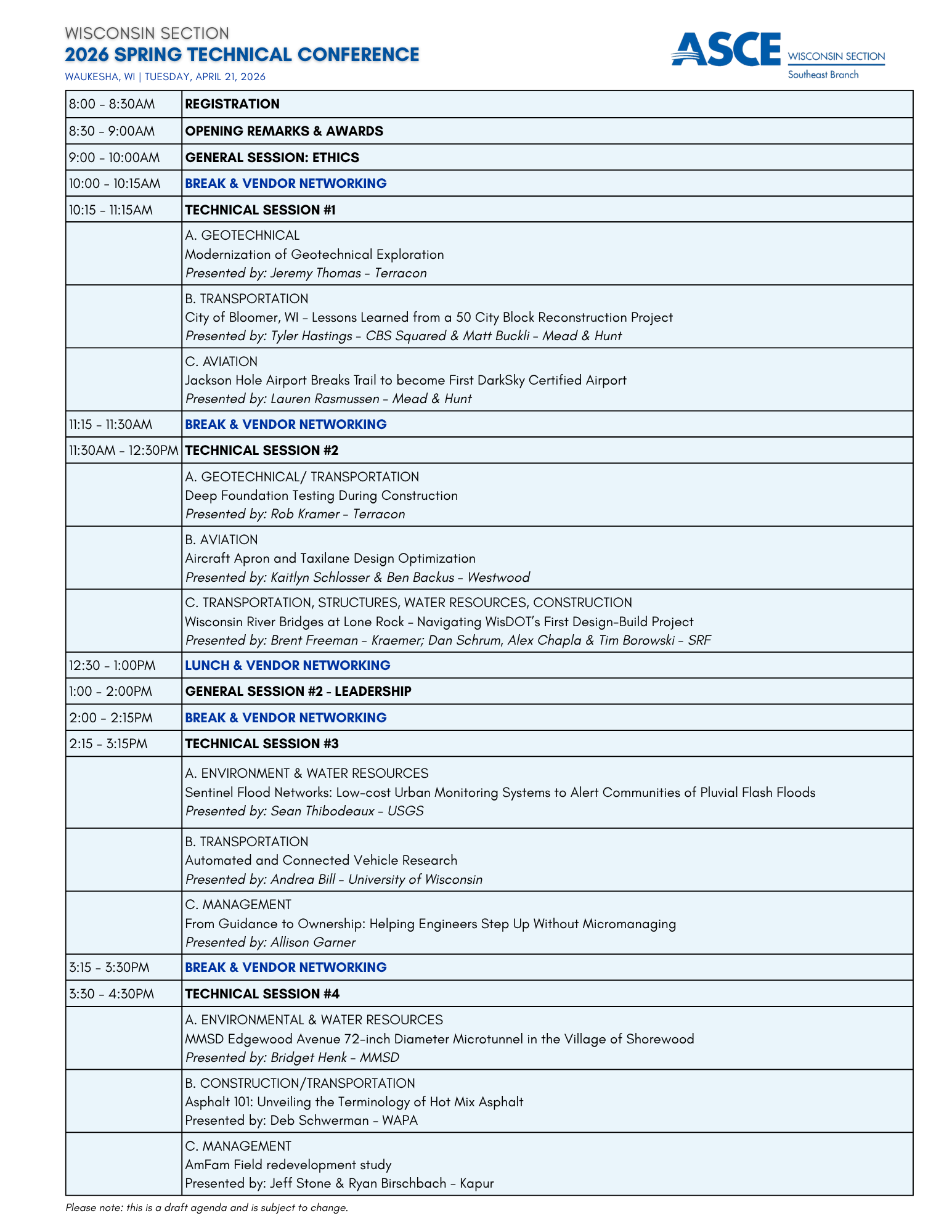 ASCE WI Spring Technical Conference